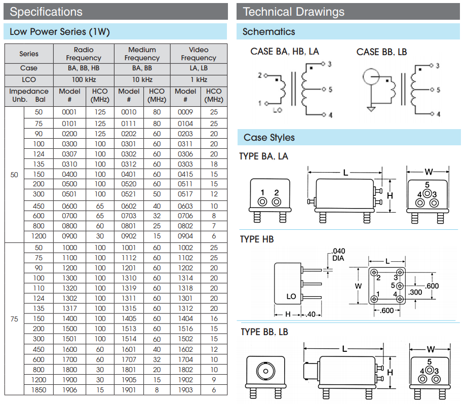 0300BB/0301BB/0010BB/0017CC/0700BB/0303LB巴倫干式變壓器 North Hills