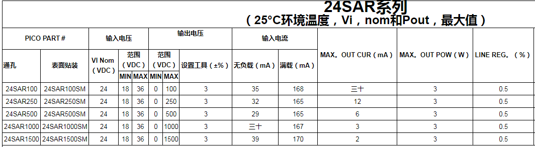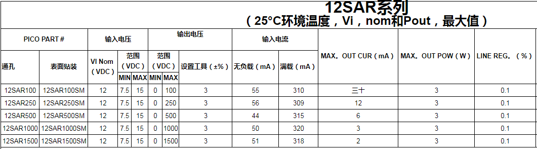 輸出電壓電流標稱值(Vin,Nom):5VDC,12VDC,24VDC