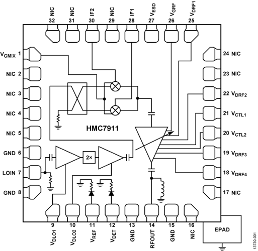 HMC7911LP5E是一款緊湊型GaAs MMIC I/Q上變頻器,采用符合RoHS標準的低應力注射成型塑料SMT封裝。 該器件提供14 dB的小信號轉換增益和25 dBc的邊帶抑制性能。 HMC7911LP5E采用RF放大器工作,前接由驅動放大器驅動LO的I/Q混頻器。 還提供IF1和IF2混頻器輸入,需通過外部90°混合選擇所需的邊帶。 I/Q混頻器拓撲結構則降低了干擾邊帶濾波要求。立維創展HMC7911LP5E為混合型單邊帶上變頻器的小型替代器件,它無需線焊,可以使用表貼制造技術。